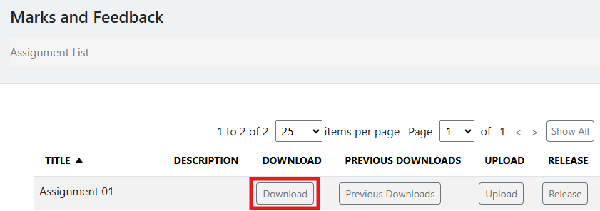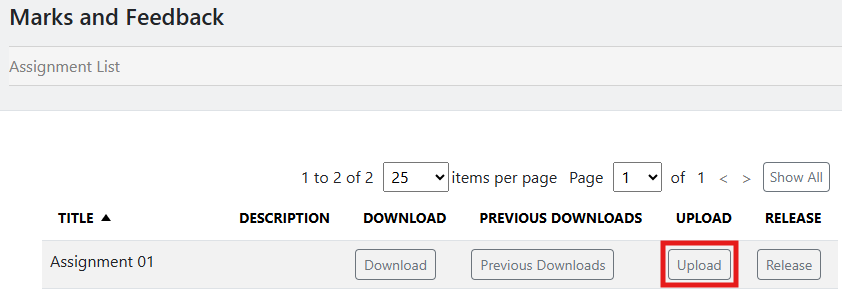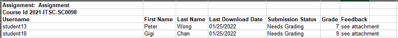 - The grade and feedback (i.e., Feedback to Learner) will be overridden if you upload and release the grades multiple times.