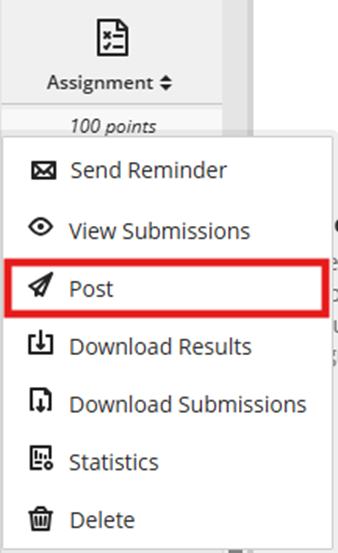 - After you have checked all the records, you can now post grades. Return to Gradebook > Grades > Select the name of the Assignment > Post.